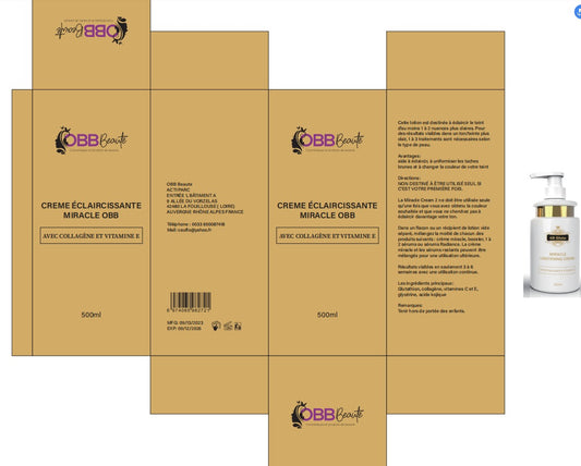 Crème éclaircissante miracle obb 500ml avec collagène et vitamine E