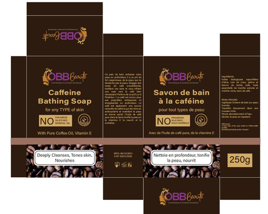 Gamme obbbeaute à la caféine, lait, savon, gommage, huile contre les cernes, sérum visage