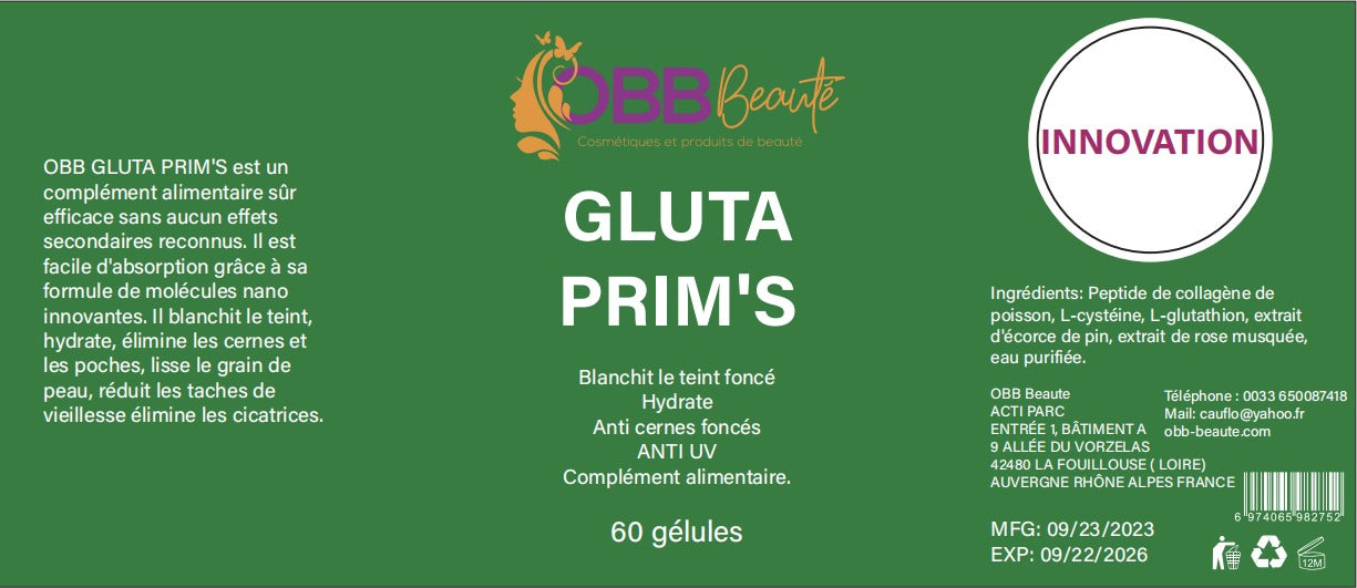 Nom du produit : Gélules Gluta Prim's Obbbeaute