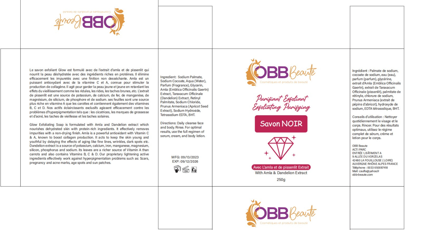 Savon noir exfoliant et purifiant obbbeaute 250g